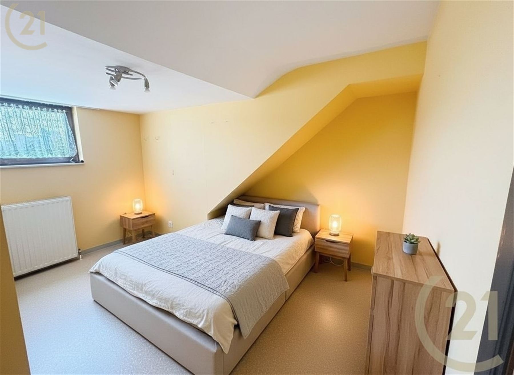 Cet appartement se compose d’un salon/living, une cuisine équipée, une salle de bain, deux chambres et une cave.