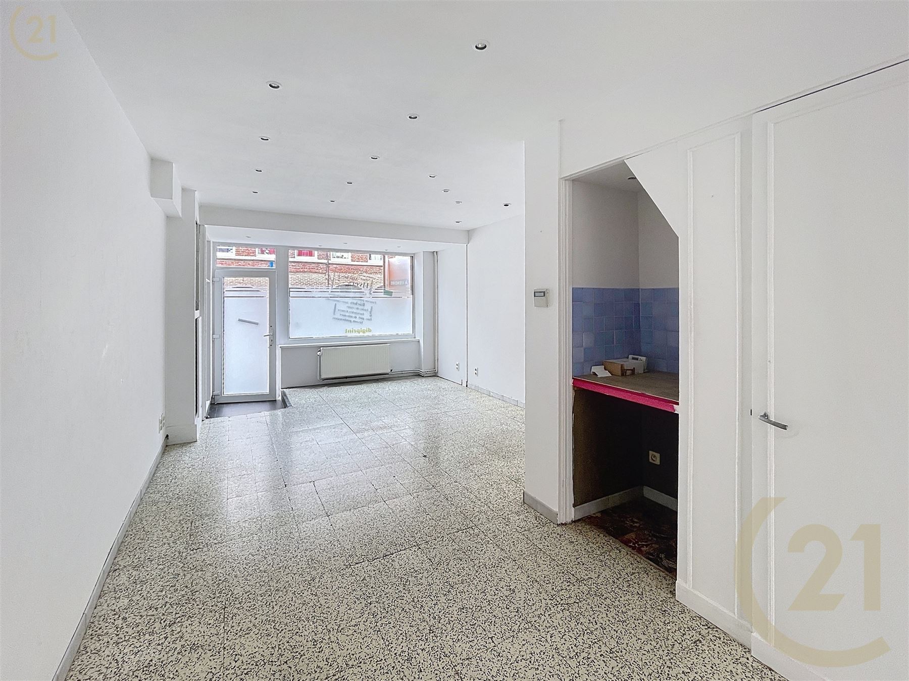 Réf/1595: Dans le centre de Frasnes: Maison de commerce comprenant rez-de-chaussée, arrière cuisine, wc et cave.