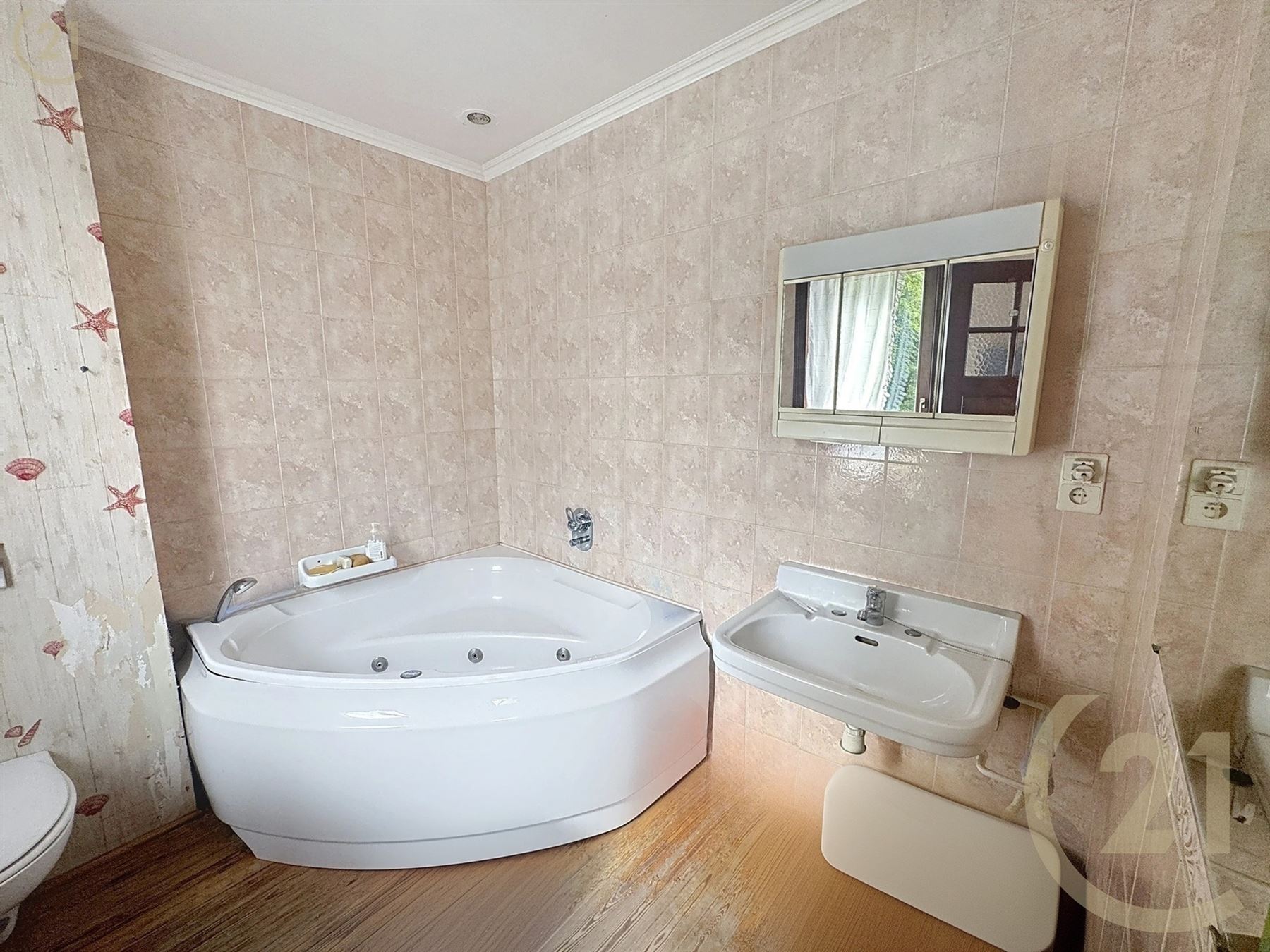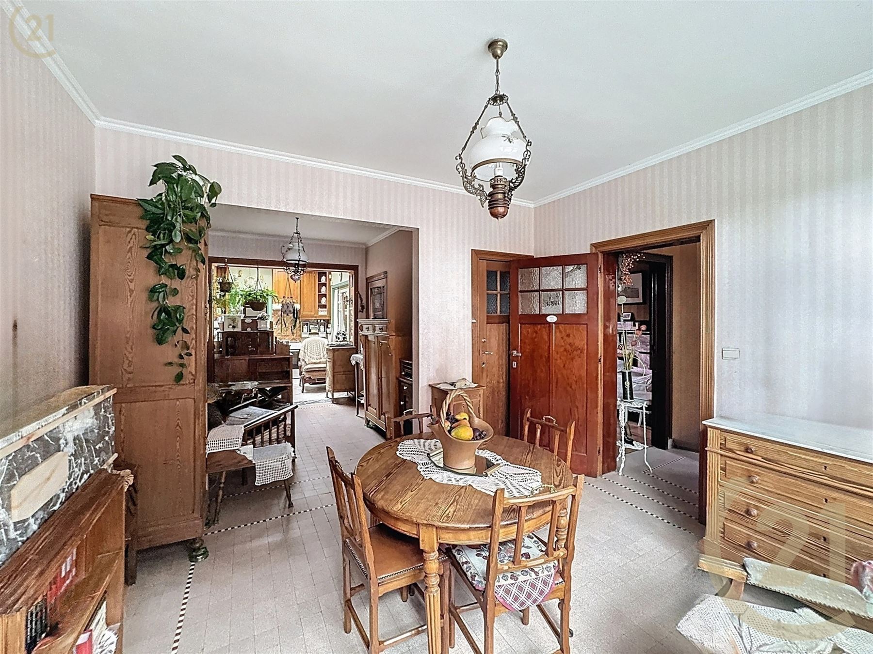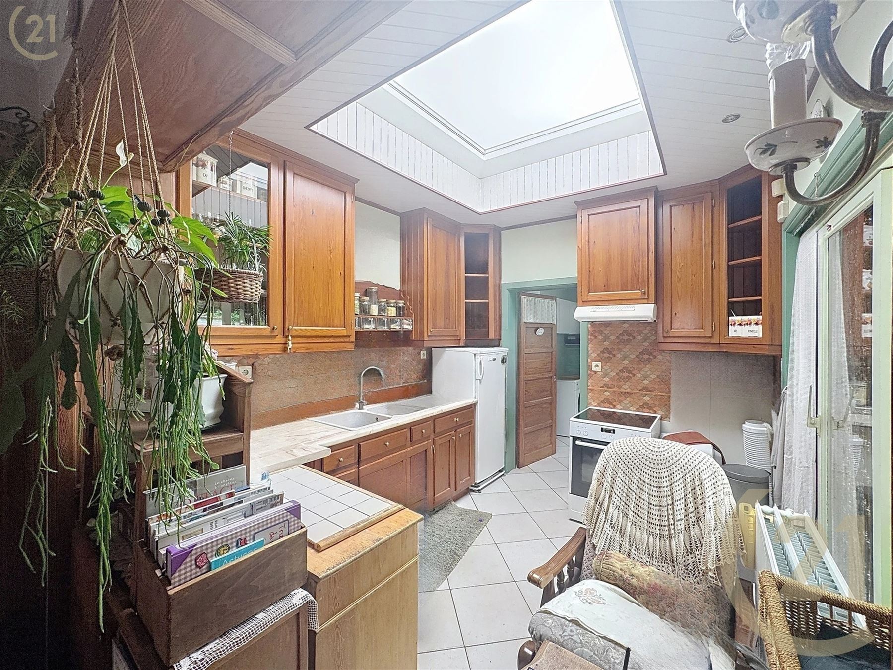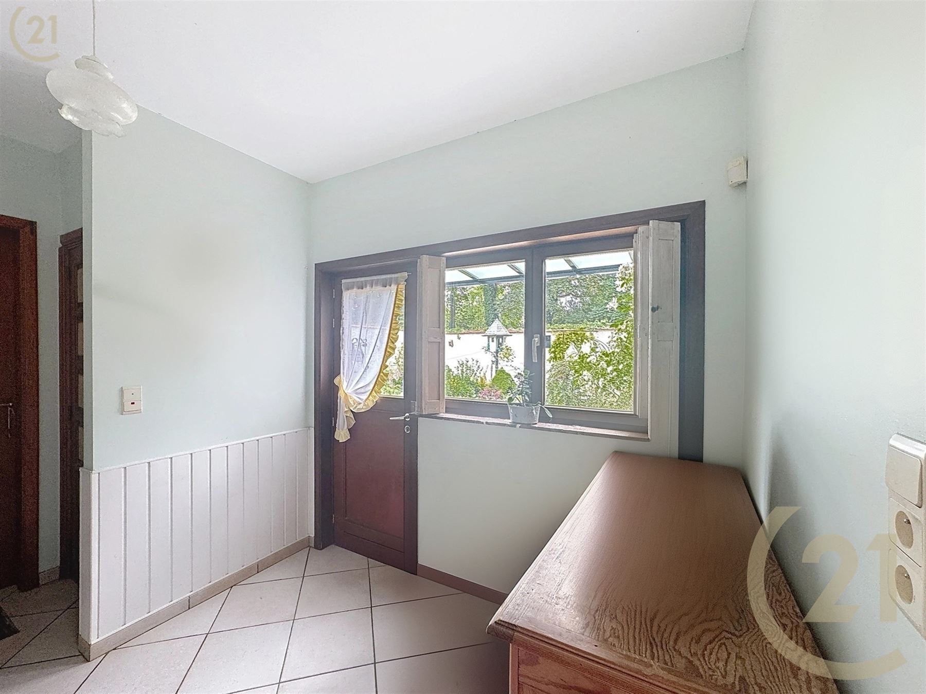 La maison se compose d’un hall d’entré, 1 chambre avec un parquet en chêne, un living ouvert sur la lumineuse cuisine, buanderie, atelier et 4 caves.