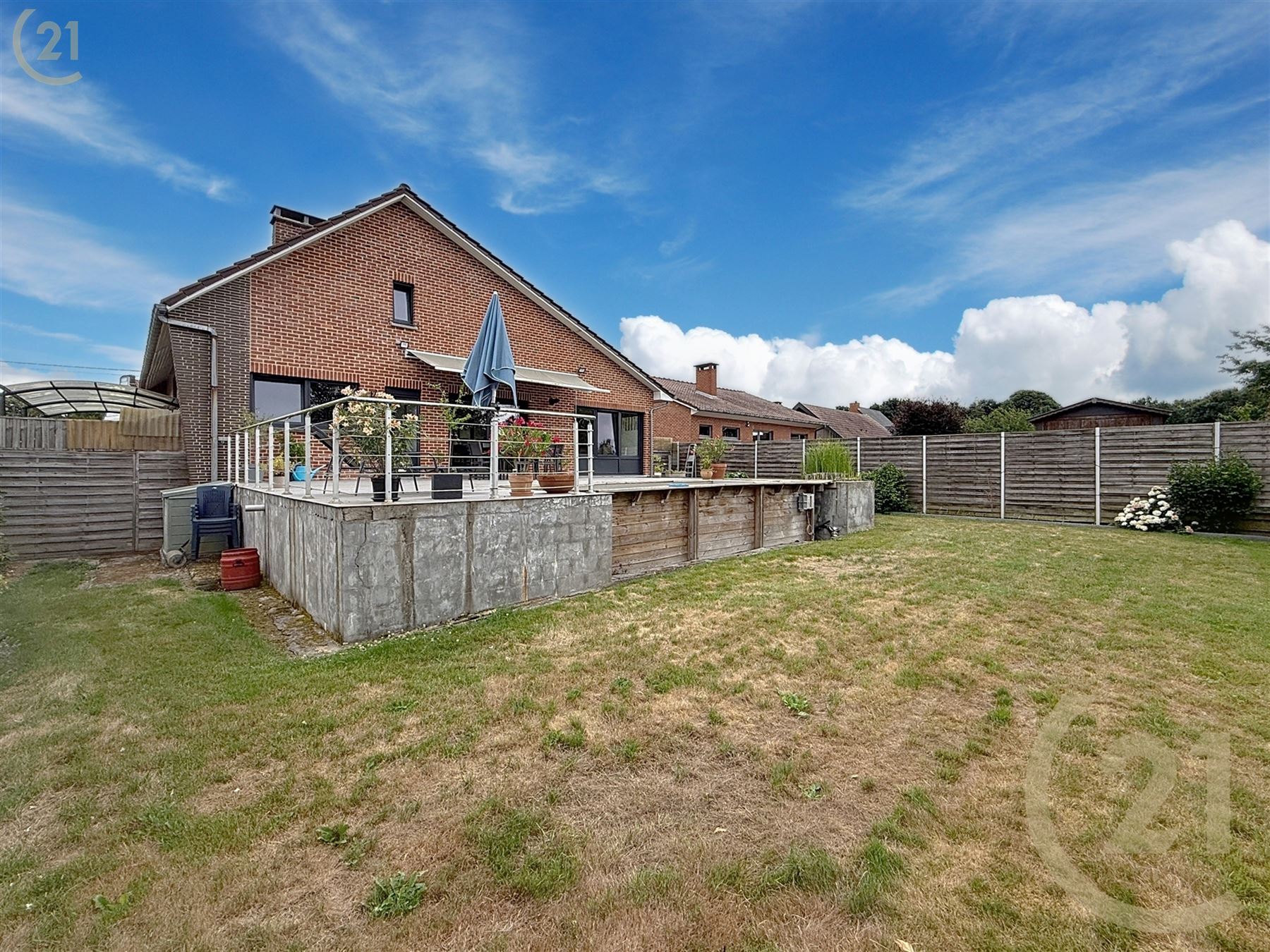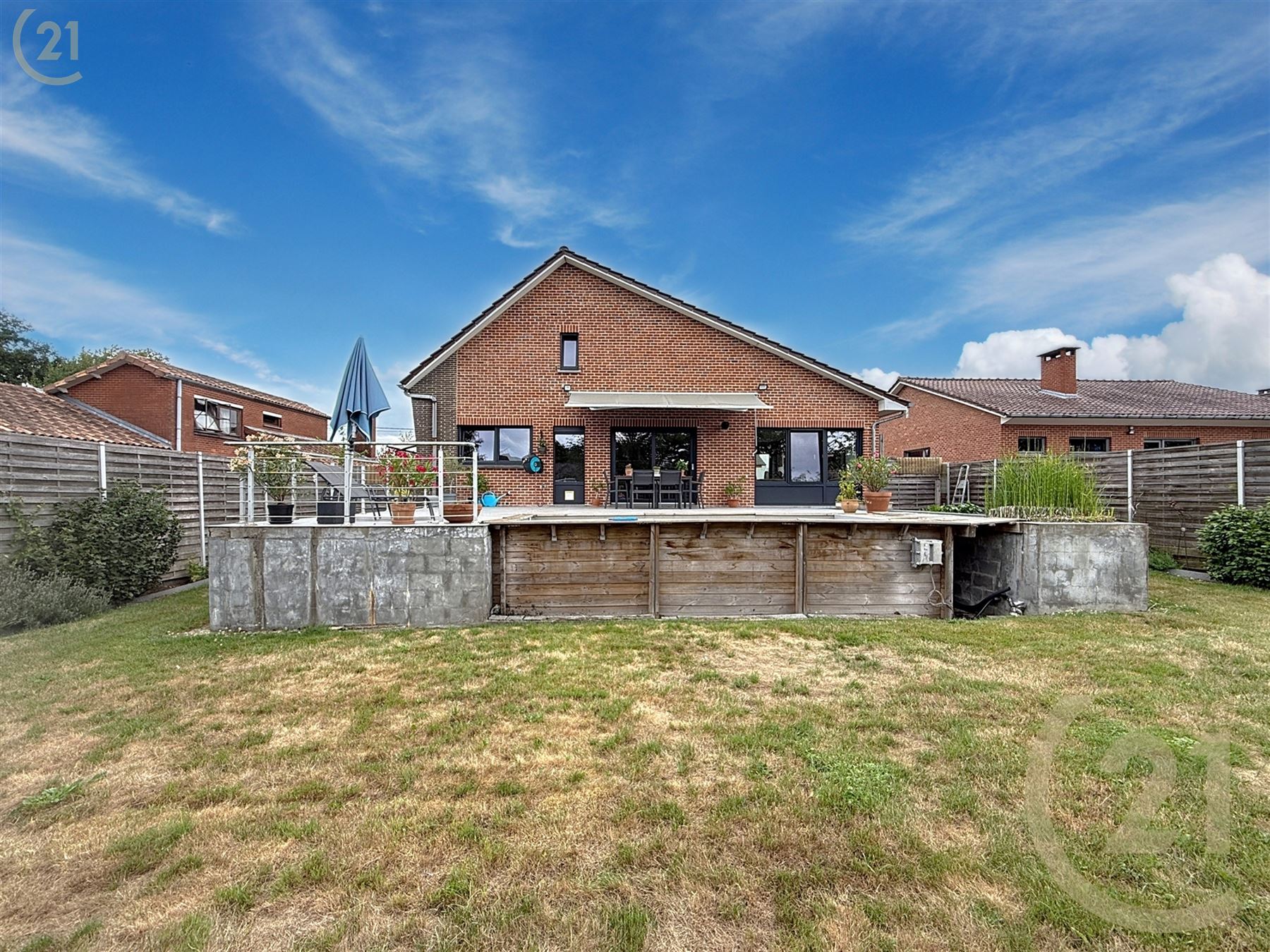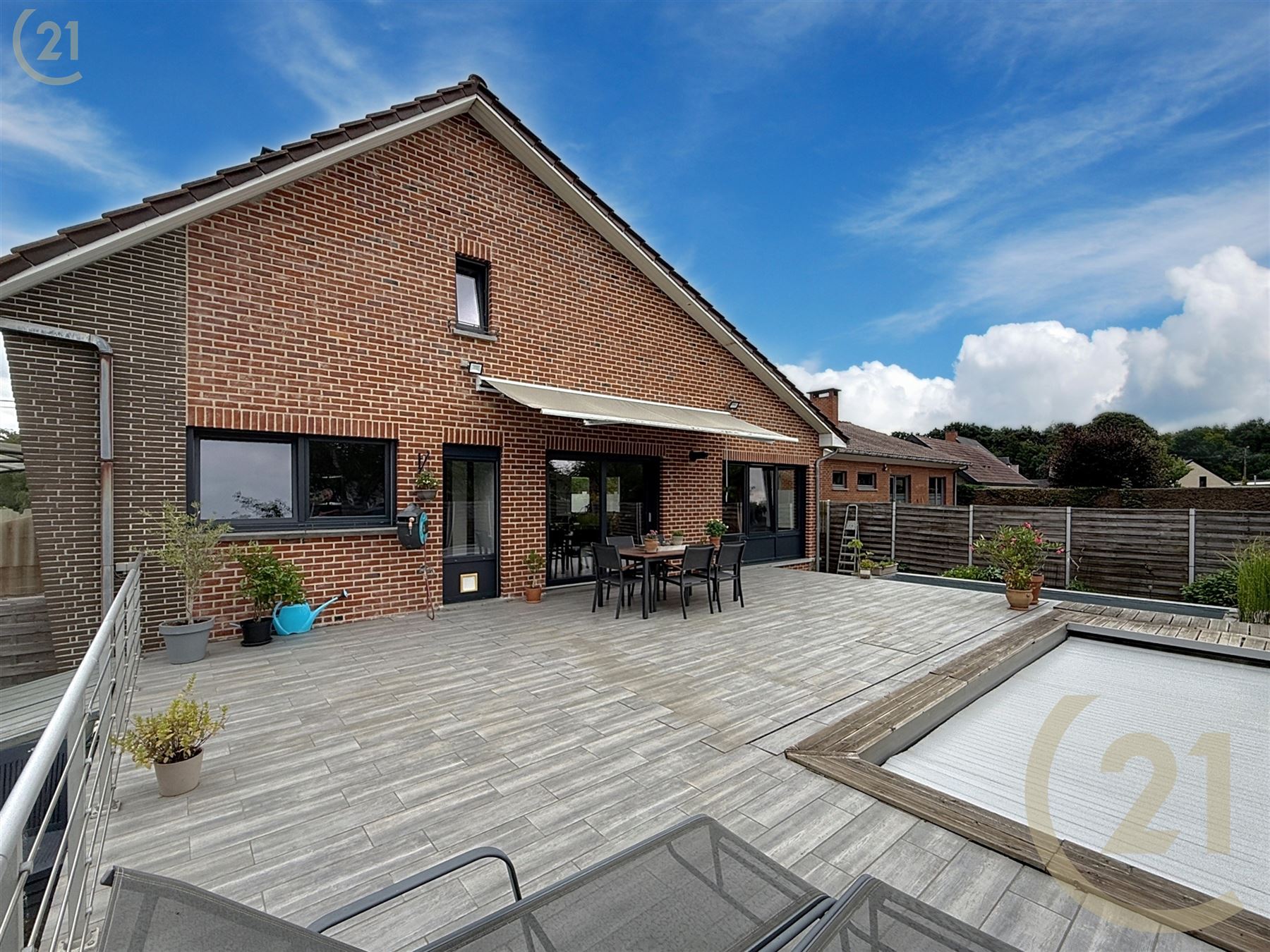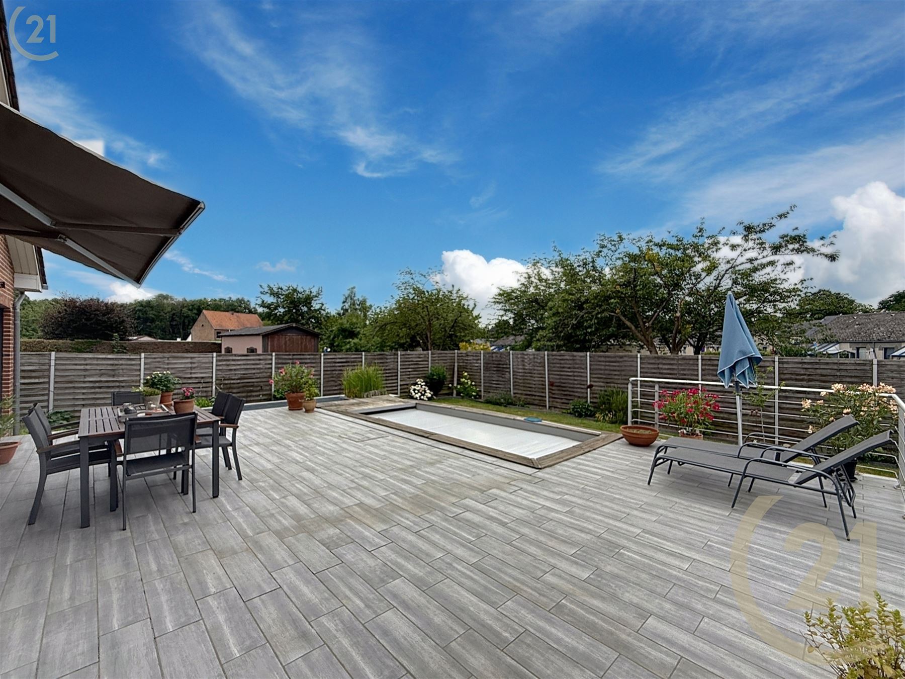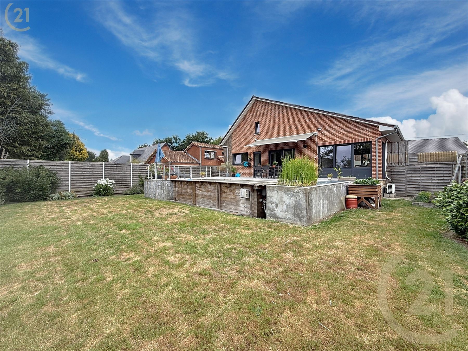 Nombreux éléments de confort et options : Panneaux solaires, 2 citernes d’eau de pluie, passage latéral, climatisation, volets, store occultant, carport, abris de jardin, étang, piscine,…