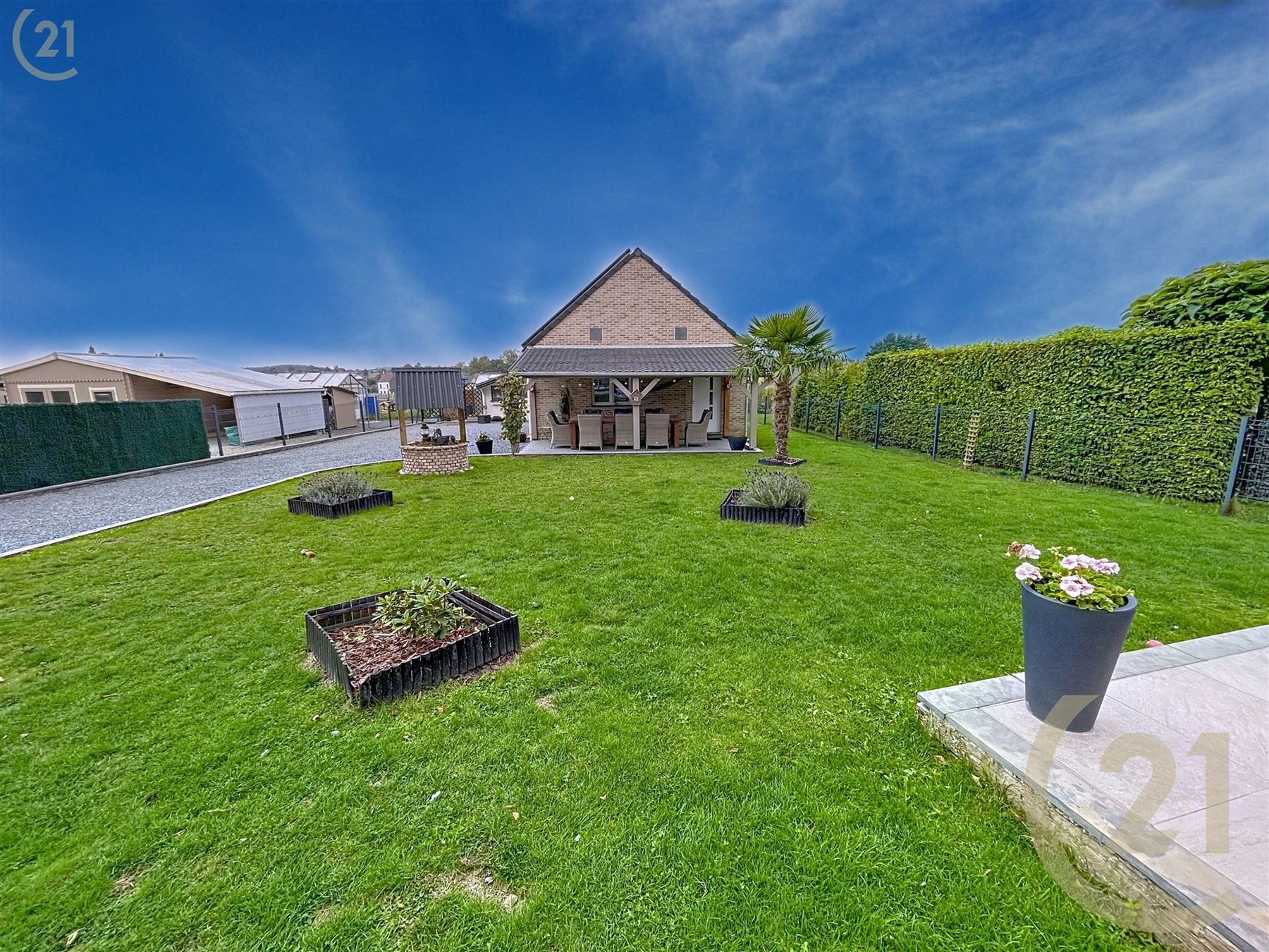 Spacieuse et lumineuse, celle-ci vous offre 3 chambres, 2 cuisines équipées, jardin, chalet, serre et 1 double garage en annexe avec un sous sol et grenier.
